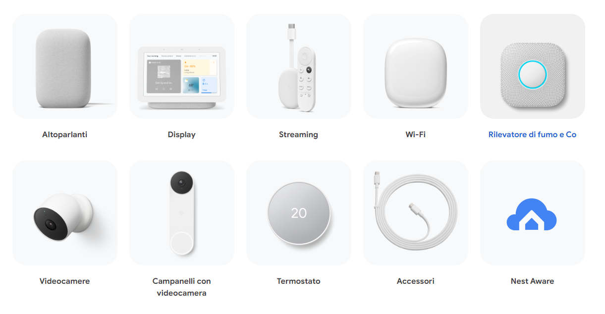 Alla base di tutto ci sono gli smart speaker Nest Audio e Nest mini (gli ex Google Home e Google Mini) che fungono da hub e da interfaccia di comando vocale “Google Assistent”. A questi dispositivi abbiamo dedicato un articolo specifico.